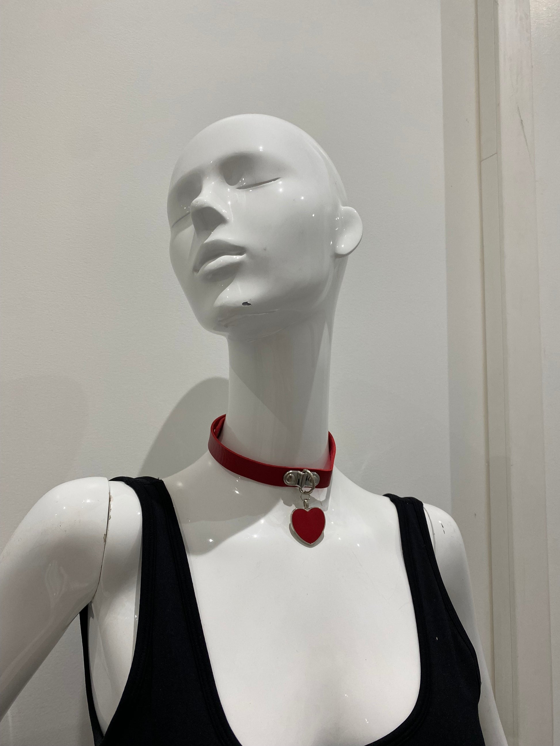 Affirmez votre sensualité avec ce collier choker rouge en simili cuir, orné d’un pendentif cœur argenté. À la fois sexy et raffiné, il se porte aussi bien comme accessoire de mode audacieux que pour pimenter vos instants intimes.